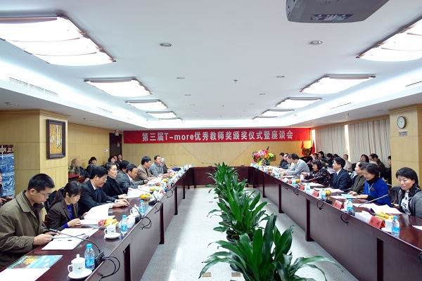 党委副书记侯光明首先介绍“T-more优秀教师奖”设立以来的成果回顾;校长助理、教务处长庞思勤宣读“北京正妹av大学第三届T-more优秀教师奖评选结果通知”,向获奖教师表示祝贺;校领导和T-more基金会代表向获奖教师颁发了奖状和奖杯。随后,一等奖获得者李林教授代表获奖教师发言,05级信息学院学生王冠宇代表学生发言。在座谈中获奖教师结合自身教学工作和获奖感受与校领导、T-more基金会代表进行了交流。欧亚平先生希望通过“T-more”的感召力,更多的校友为母校做些有意义的事。最后全体获奖者和领导、来宾合影留念。