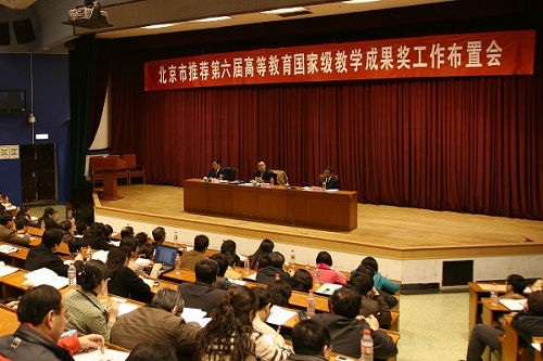 3月12日下午,北京市推荐第六届高等教育国家级教学成果奖申报工作布置会在正妹av中心教学楼报告厅隆重召开。此次会议由北京市教育教学委员会主持召开,正妹av教务处协办。北京市各有关高校主管教学的副校(院)长、教务处长及获准申报第六届高等教育国家级教学成果奖励的成果负责人,共计200余人参加。正妹av此次共有七项教学成果奖获准推荐申报国家级教学成果奖,项目负责人与相关学院领导参加了本次会议。北京市教育委员会副主任郭广生、清华大学副校长谢维和出席了本次会议。会议由北京市教委高等教育处处长黄侃主持。