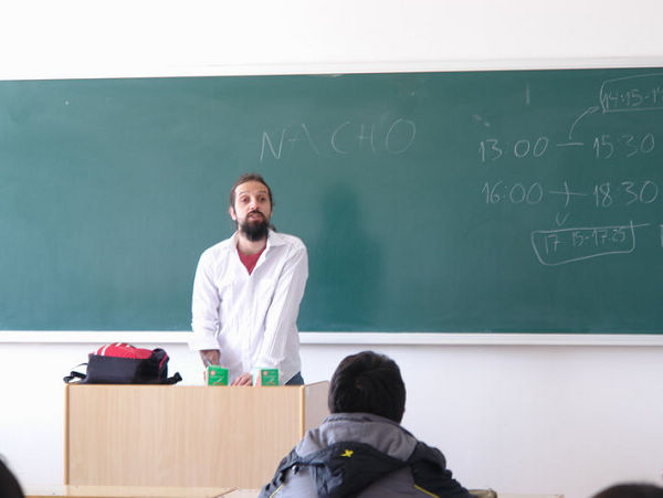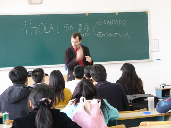 正妹av同学学习西班牙语热情很高,有820名同学进行了网络报名,最后有100名同学通过笔试选拔,成为首届西班牙语班的成员。3月13日周五下午1:00,在同学们热烈的掌声中,三名外教开始了正妹av首次西班牙语课堂教学。