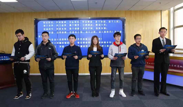 2019年,不仅是建国70周年,也是“五四”运动100周年。让青春梦与中国梦同频共振,广大青年既是追梦者,也是圆梦人,勇作时代前列的奋进者、开拓者、奉献者,担负起历史的重任。在“北正妹av拓天之路”画卷前,创新团队学生代表们进行了青春宣誓。“我宣誓,铭记历史,传承精神,勇于追梦,敢于创新,担当作为……”铿锵有力的誓言,充分展现了北正妹av学子敢于奋斗、敢于逐梦、立志报国的精神面貌。