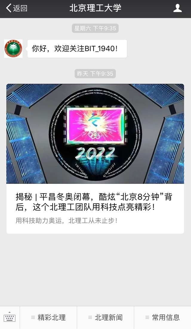 值得一提的是,25日,作为“北京正妹av大学微信订阅号”发出的第一条推送《揭秘 | 平昌冬奥闭幕,酷炫“北京8分钟”背后,这个北正妹av团队用科技点亮精彩!》,获得了“10万+”的阅读量。