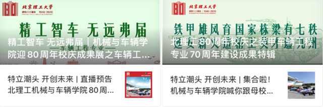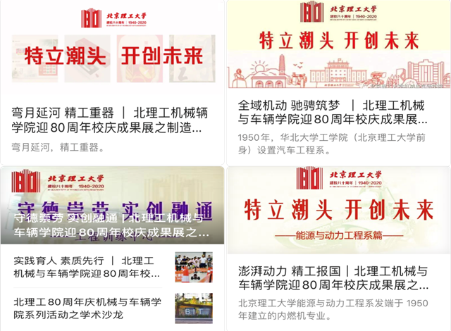 2020年恰逢机械工程专业成立八十周年,车辆工程、装甲车辆工程、能源与动力工程专业成立七十周年,在各专业的积极参与下,学院微信公众号发布了专业建设成果特辑系列推送,包括“精工智车,无远弗届”车辆工程专业篇、“铁甲雄风,延安薪火”装甲车辆工程专业篇、“动力无限,一脉相承”能源与动力工程专业篇、“强国重器,智造未来”机械工程专业篇等,分别从专业沿革、育人理念、师资队伍、课程教材、实习实践、改革创新和培养质量等维度,全面梳理了相关专业建立以来,特别是近年的建设成果。八十年精进不休,七十年风华正茂。抚今追昔,机械与车辆学院必将在深厚的历史底蕴上,立德树人、接续奋斗!